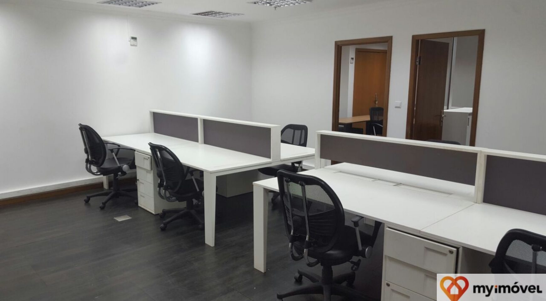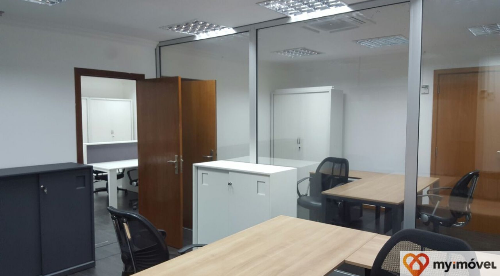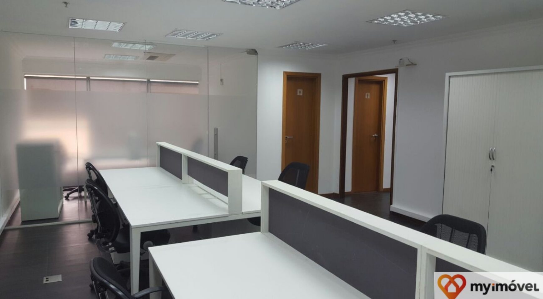 Área atualmente dividida em 3 salas privadas e 2 espaços abertos com ilhas (reconfiguração possível de acordo com as necessidades do inquilino).