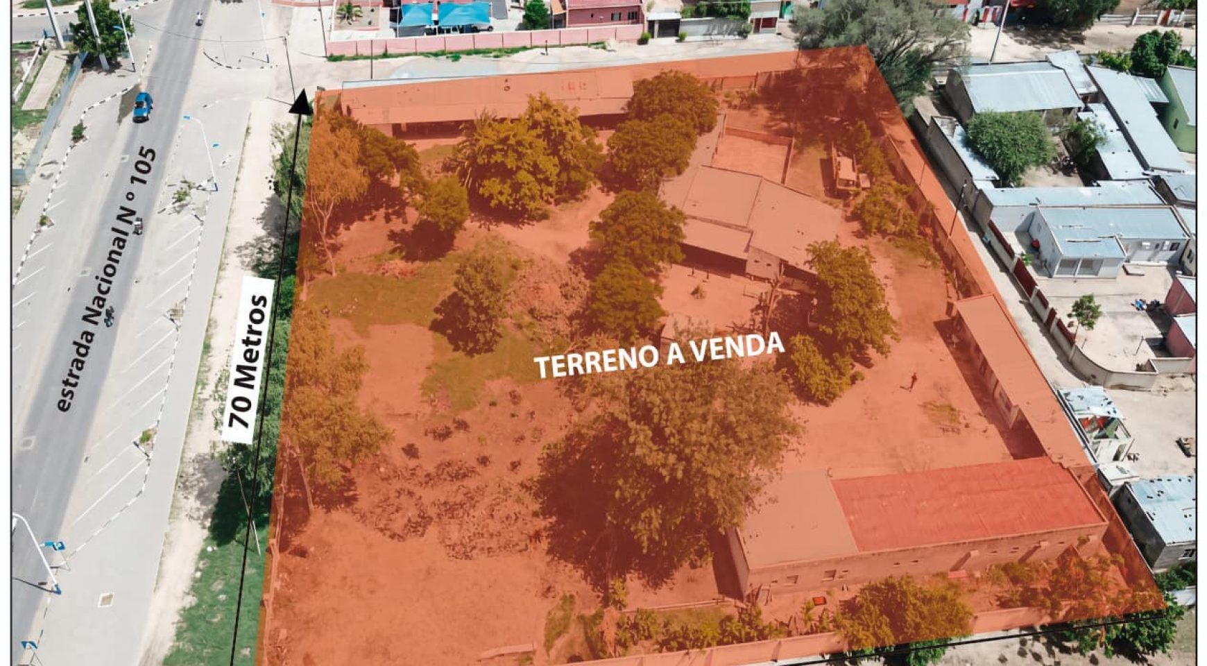 O terreno possui uma área total de 4.716,55 m², com natureza urbana/rústica, documentação regularizada e Direito de Superfície, encontrando-se frontal à Estrada Nacional nº 105, um dos principais eixos rodoviários da região sul de Angola, com ligação direta à República da Namíbia.